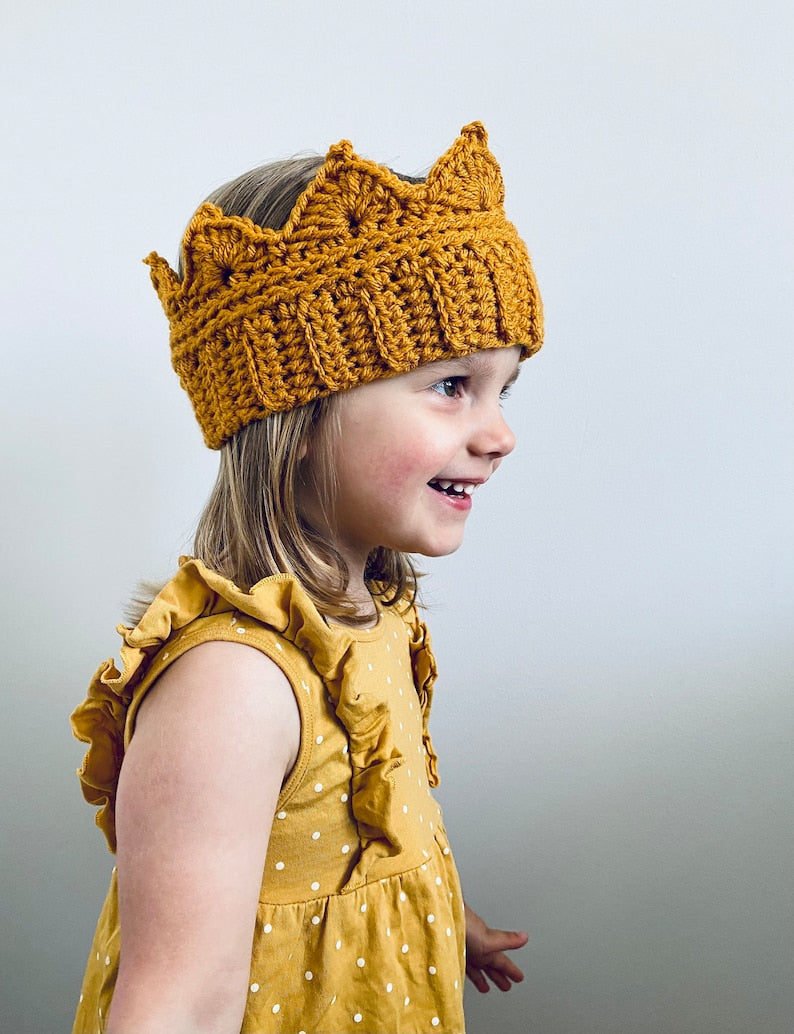 Dress up or pretend play crochet crown. Ideal for birthday or Christmas parties. Pattern available in two sizes adult and child.