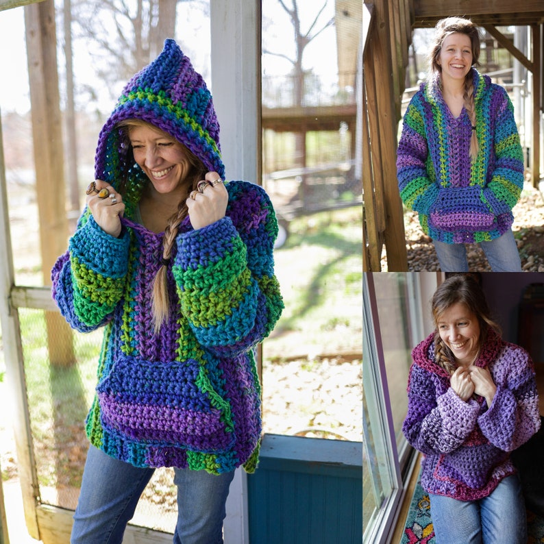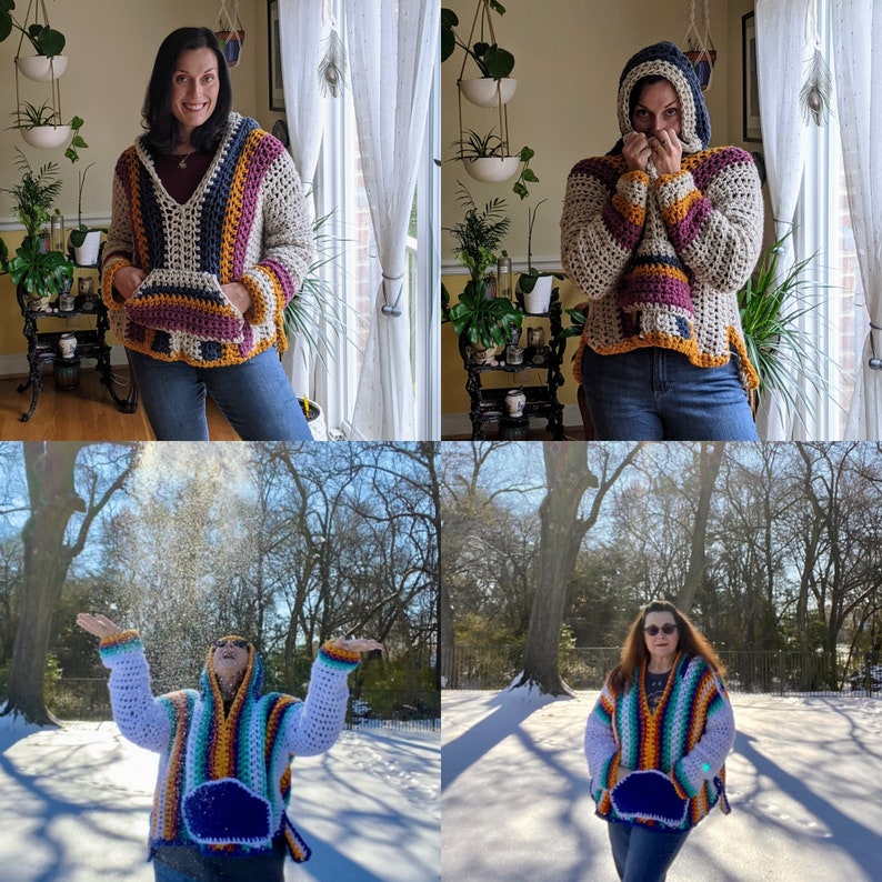 This cozy hooded pullover is perfect for anyone who loves quick and stylish crochet projects. Inspired by the classic Mexican Baja Hoodies, it features a relaxed, oversized fit that’s ideal for lounging or showing off your skills!