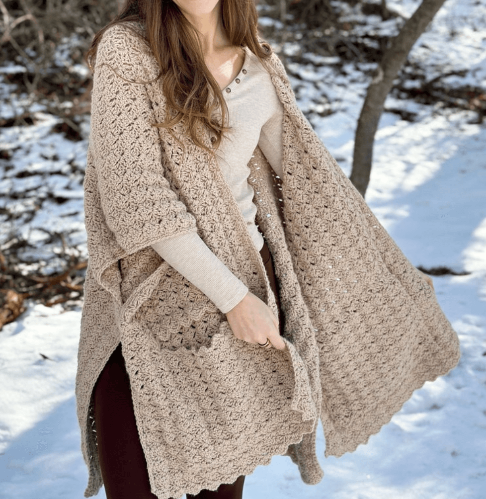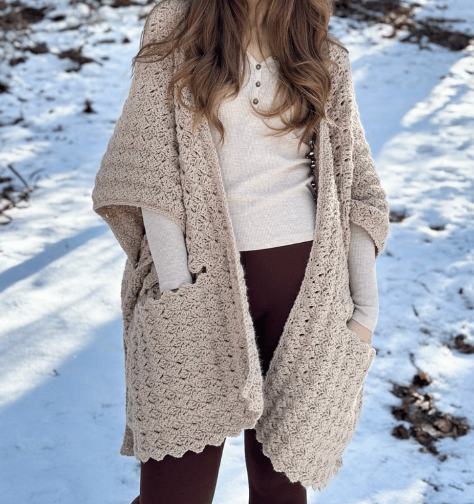 Introducing the Woodlands Blanket Wrap, a crochet creation designed for ultimate comfort and style. Luxuriously oversized and irresistibly cozy, this wearable blanket features two spacious front pockets for added functionality. Elevate your wardrobe with the Woodlands Blanket Wrap, complete with a detailed video tutorial to guide you through the creation of this chic yet practical piece.