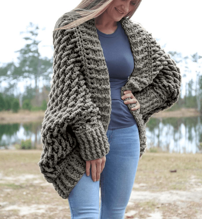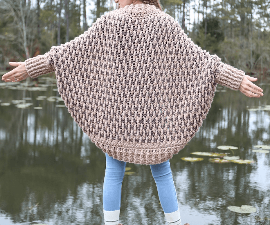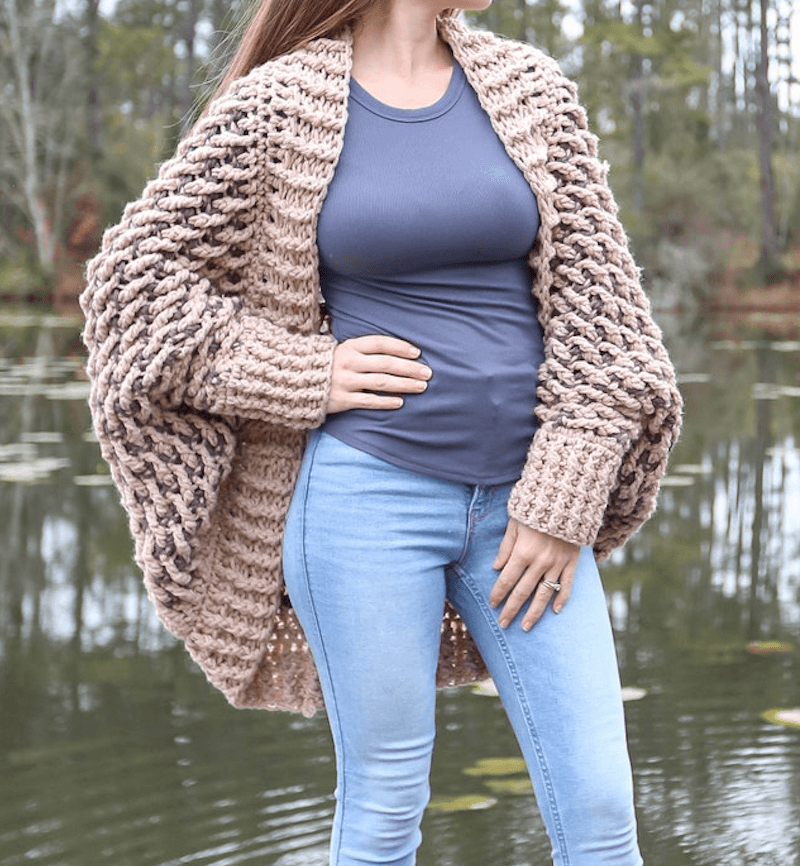 This Easy Crochet Cocoon Cardigan is made from a simple rectangle using the alpine stitch with chunky yarn and is perfect for a beginner crocheter. This super simple sweater requires minimal seaming, no shaping use th pattern and video tutorial.