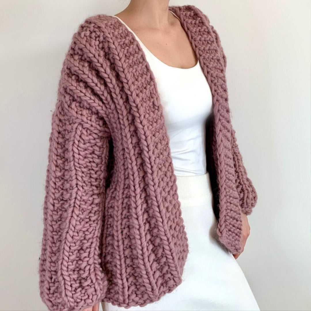 Let's try to knit this lovely chunky cardigan in a weekend! Because it’s made with chunky wool yarn, it works up super quickly.
